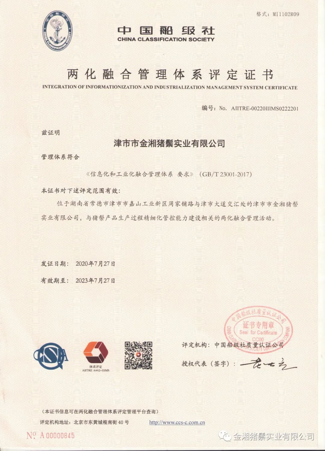 2020年,金湘豬鬃順利通過(guò)國(guó)家工信部“兩化融合管理體系”評(píng)定,獲得由國(guó)家工信部授權(quán)評(píng)定機(jī)構(gòu)頒發(fā)的《兩化融合管理體系評(píng)定證書》,標(biāo)志著金湘豬鬃信息化和工業(yè)化融合工作取得新的突破。